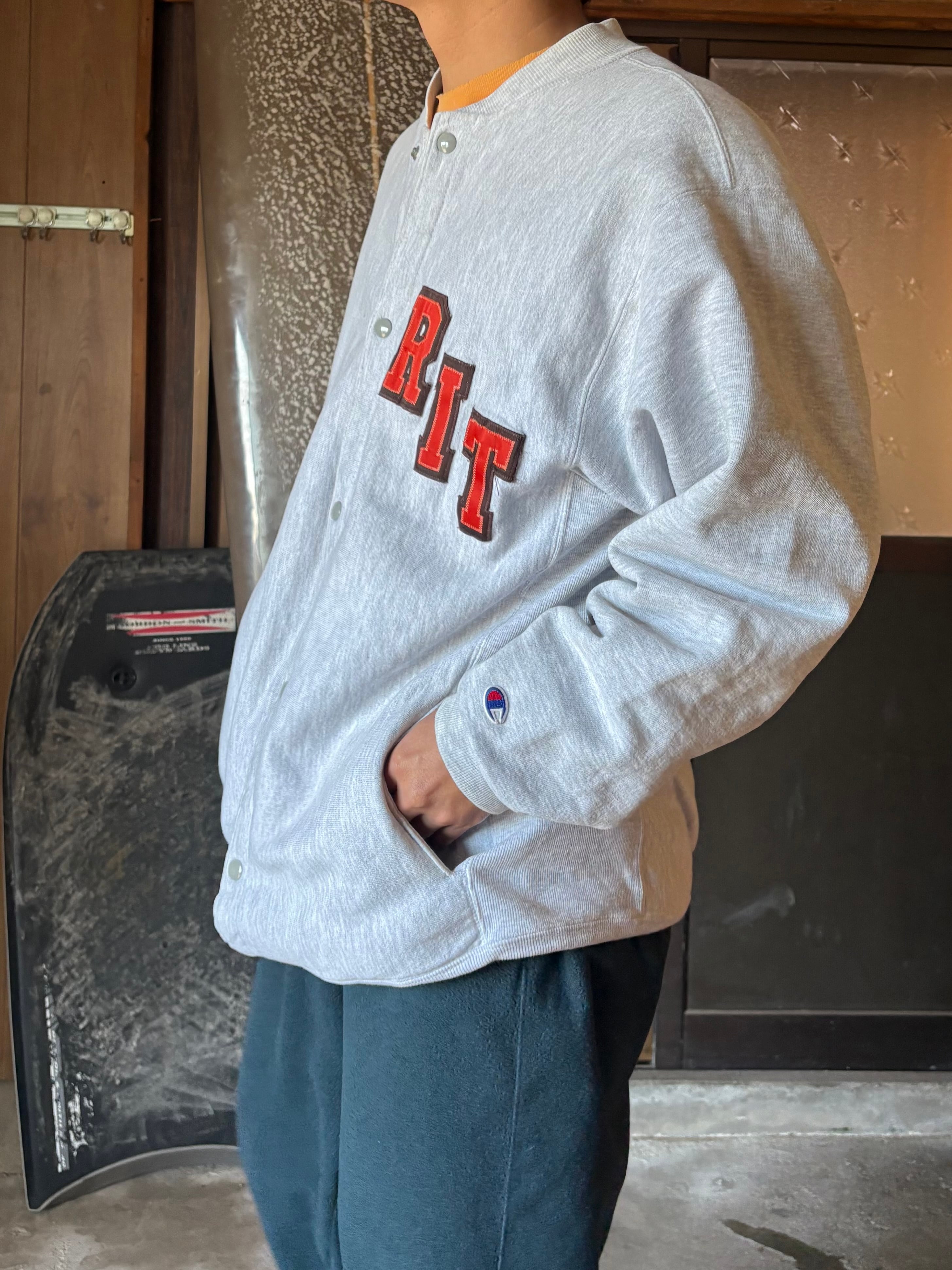 1990's "champion" 'RIT' reverse weave snap cardigan