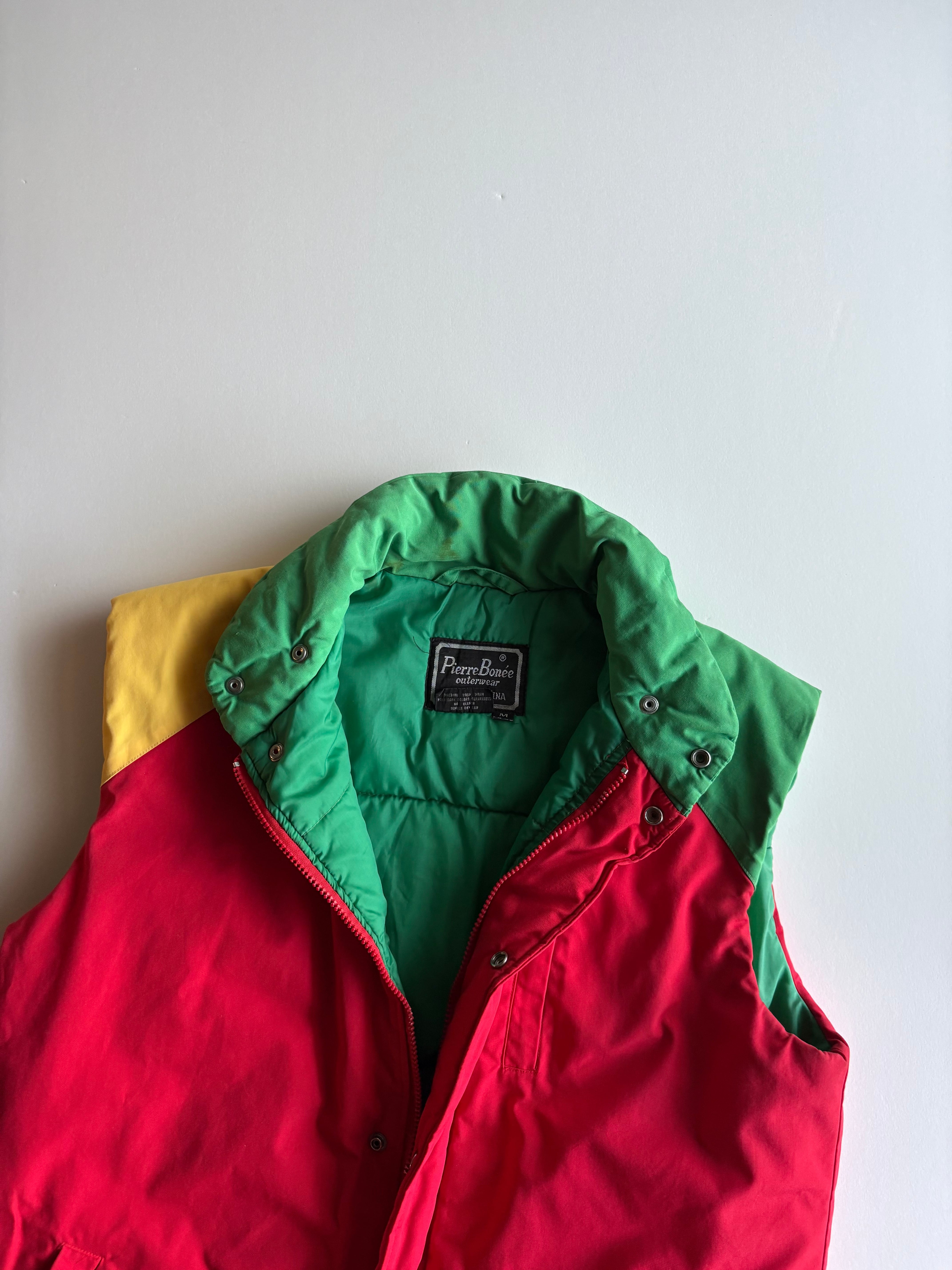 ラスタカラーを彷彿とさせるような色味ではあるが、配色のバランスが良く、スタイリングに使いやすい一枚。