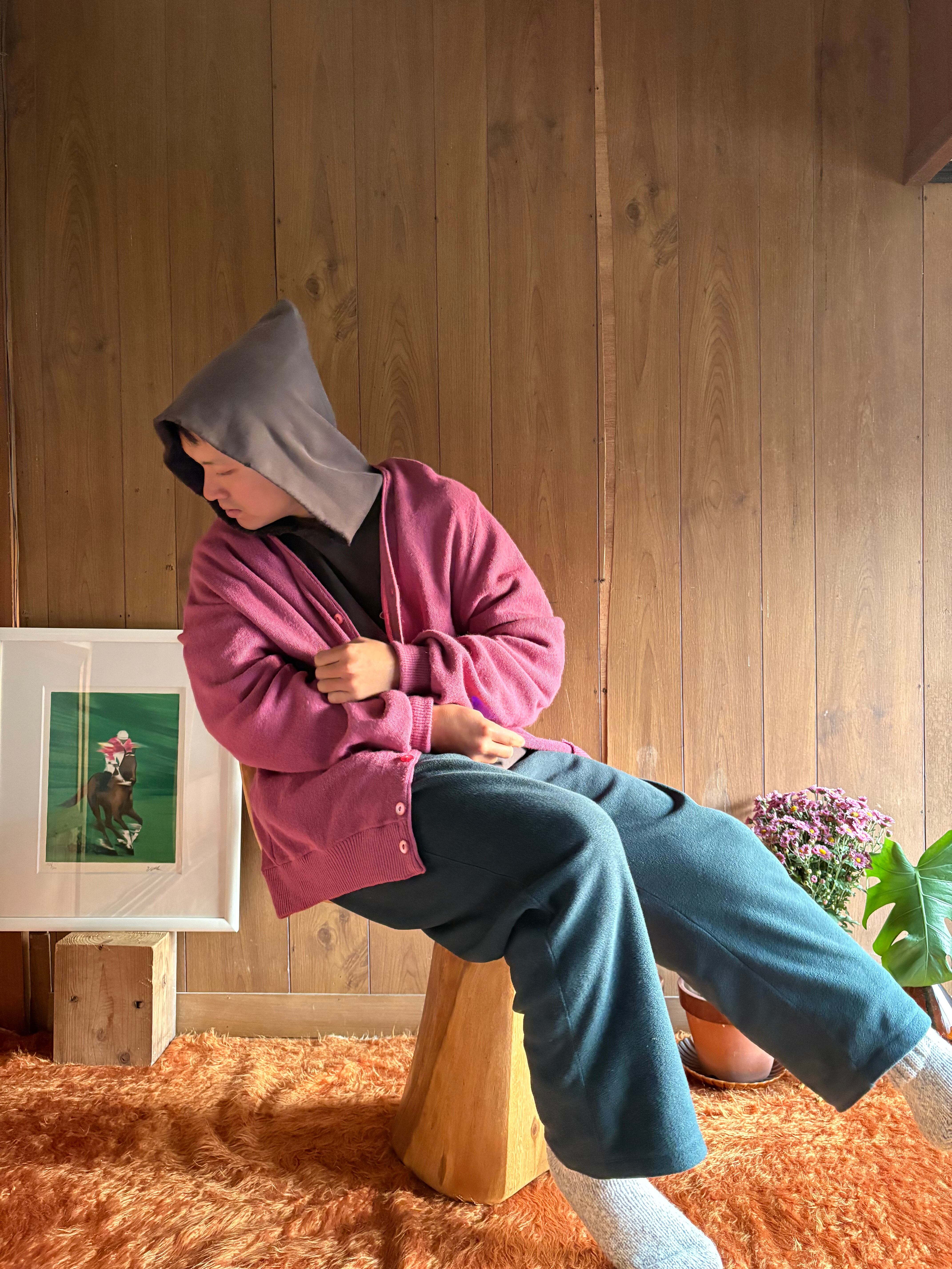 夏以外のほぼオールシーズン使えるアクリルカーディガン。
