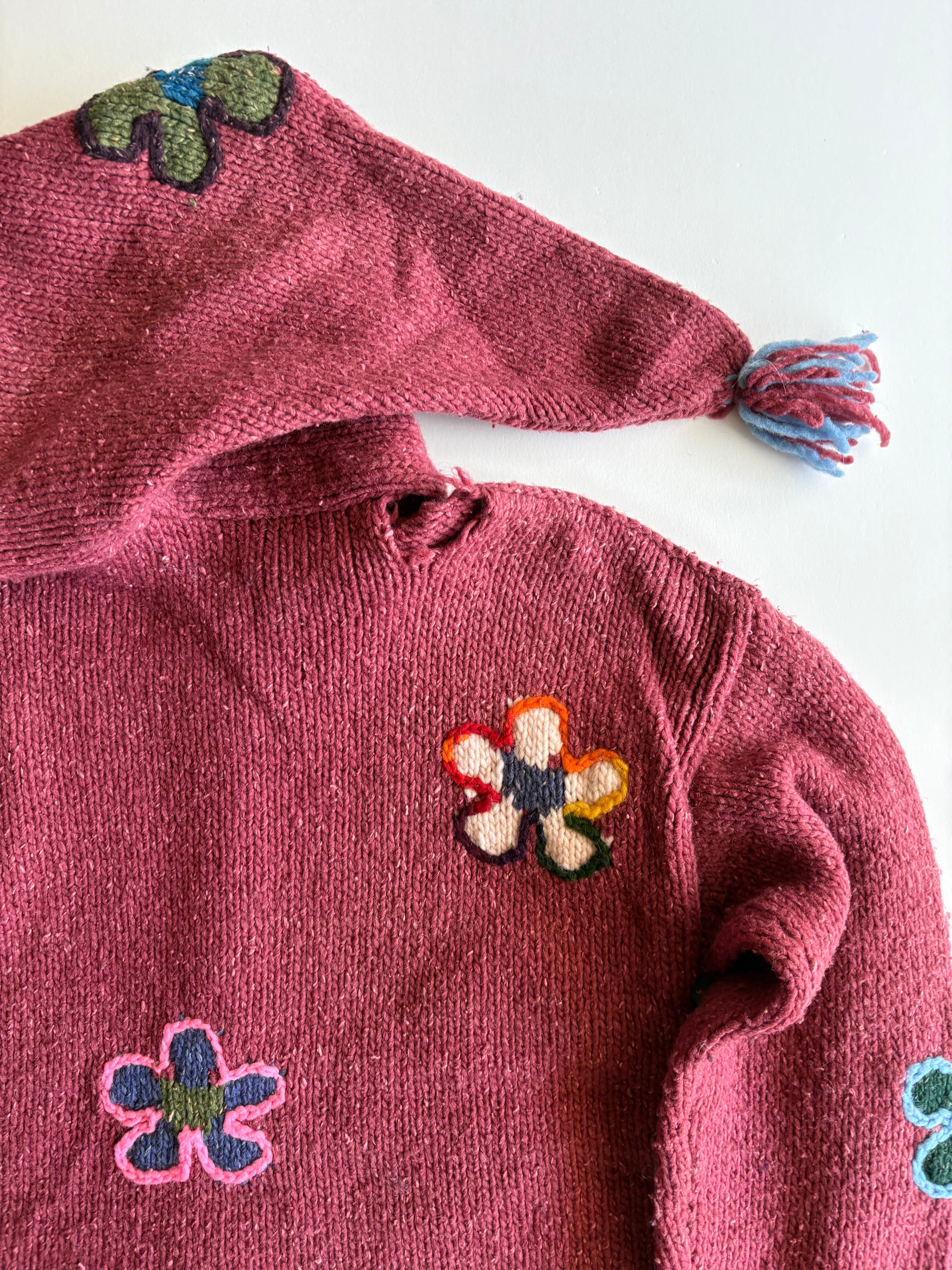 形・デザインが特徴的なエクアドルニットのフーディー。
