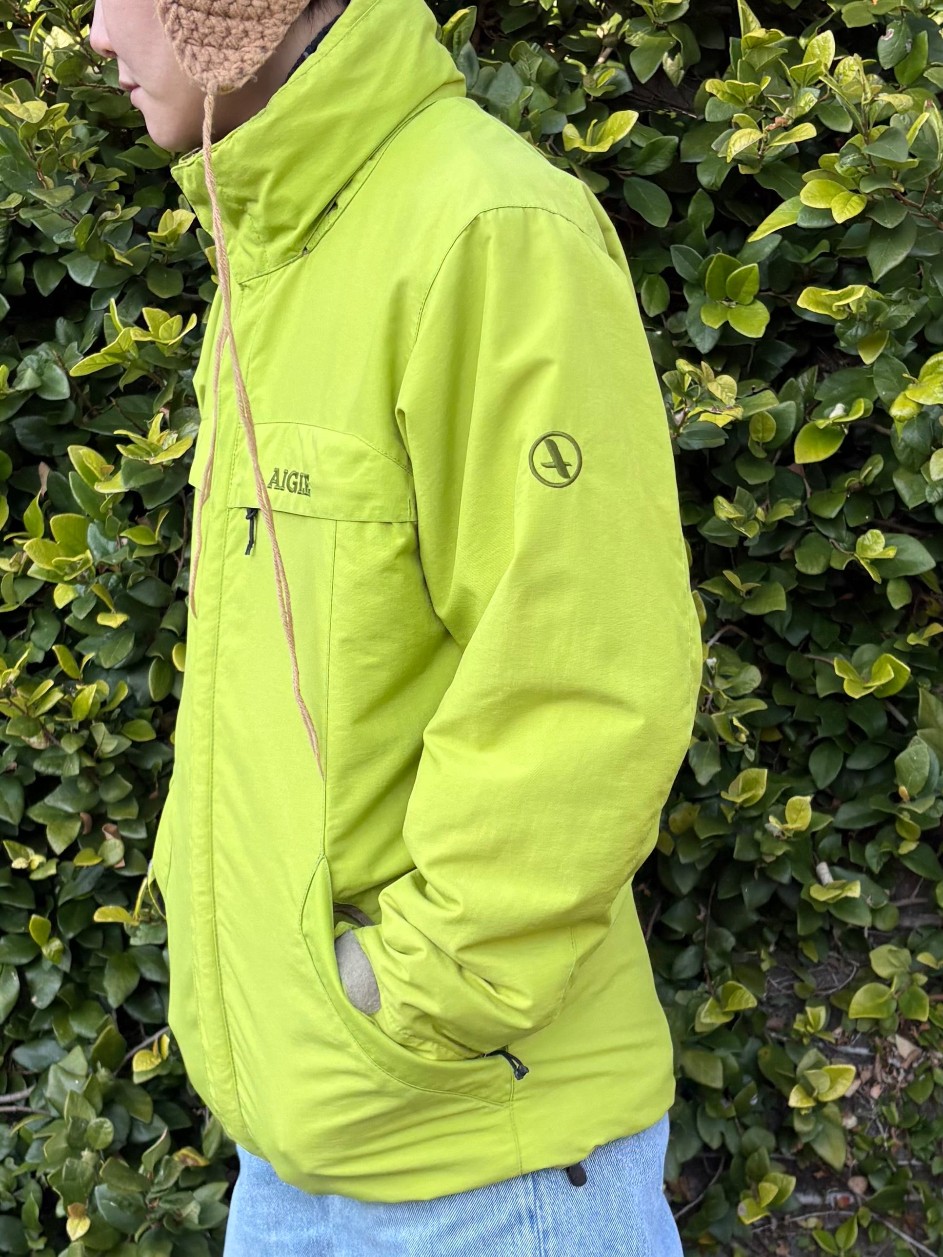 AILGLEの蛍光グリーンのナイロンジャケット