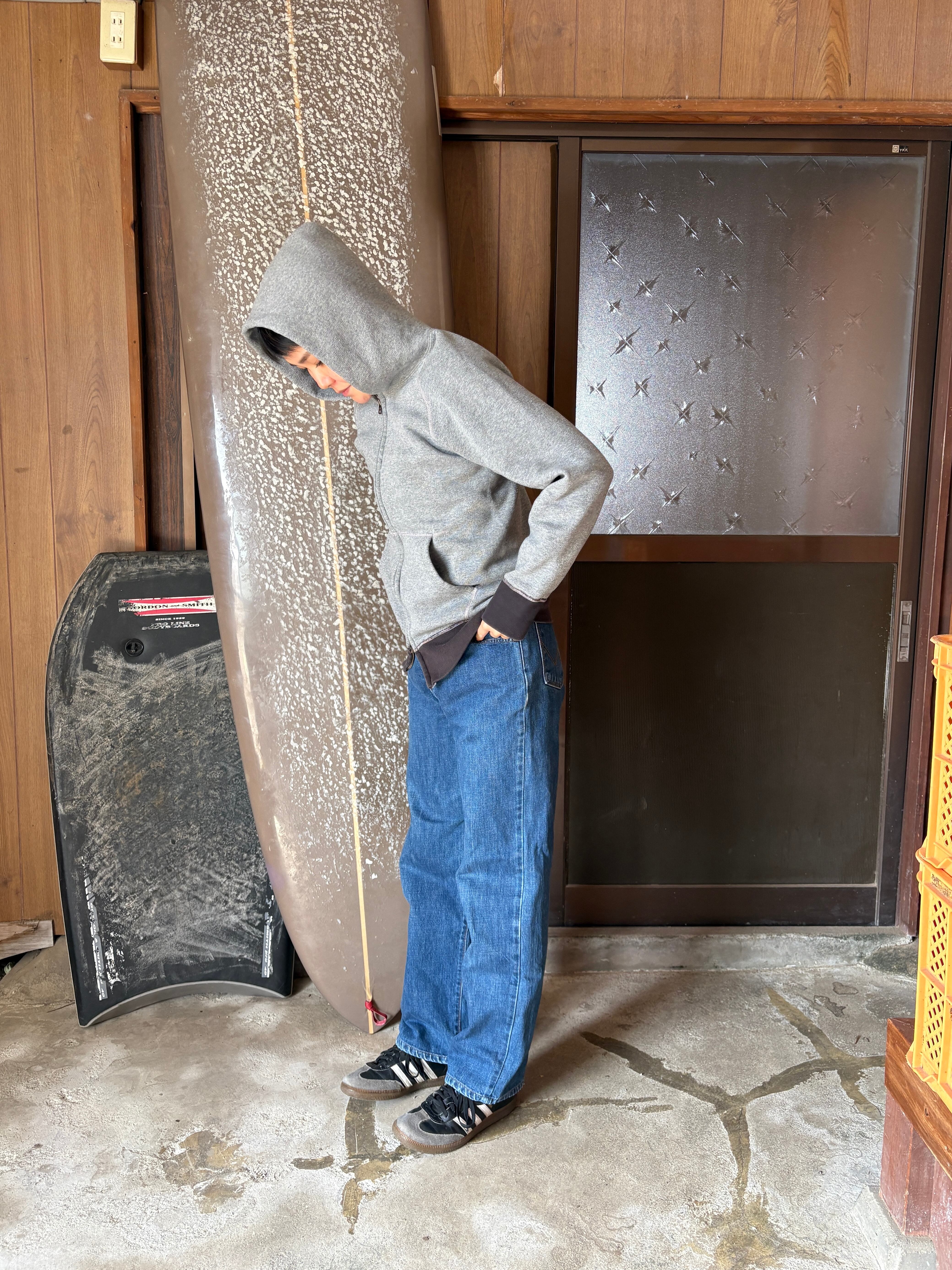 シンプルなグレーカラーで何にでも合わせやすく、使いやすい一着。