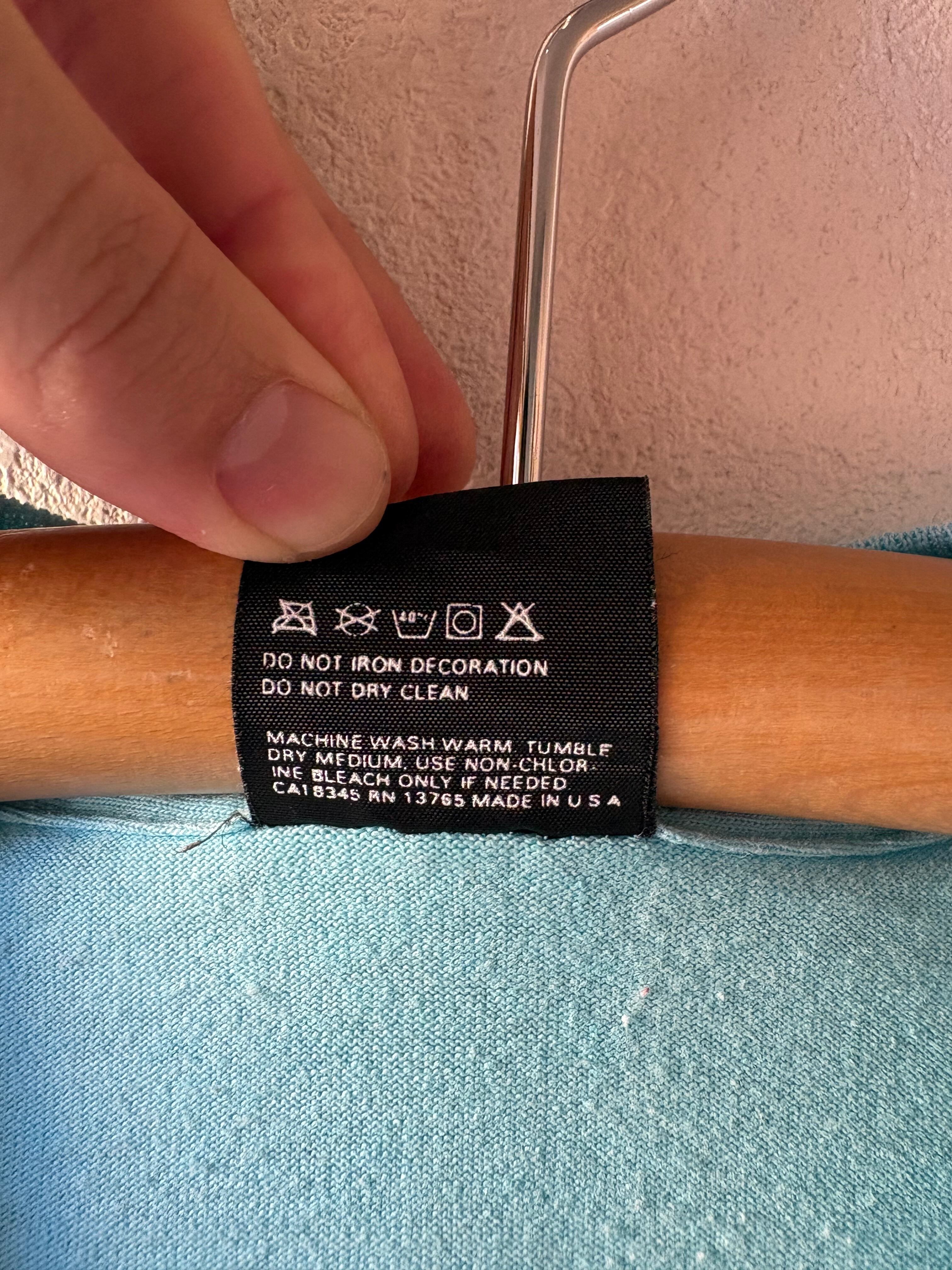 鮮やかな水色ボディとXLサイズが嬉しい一枚。