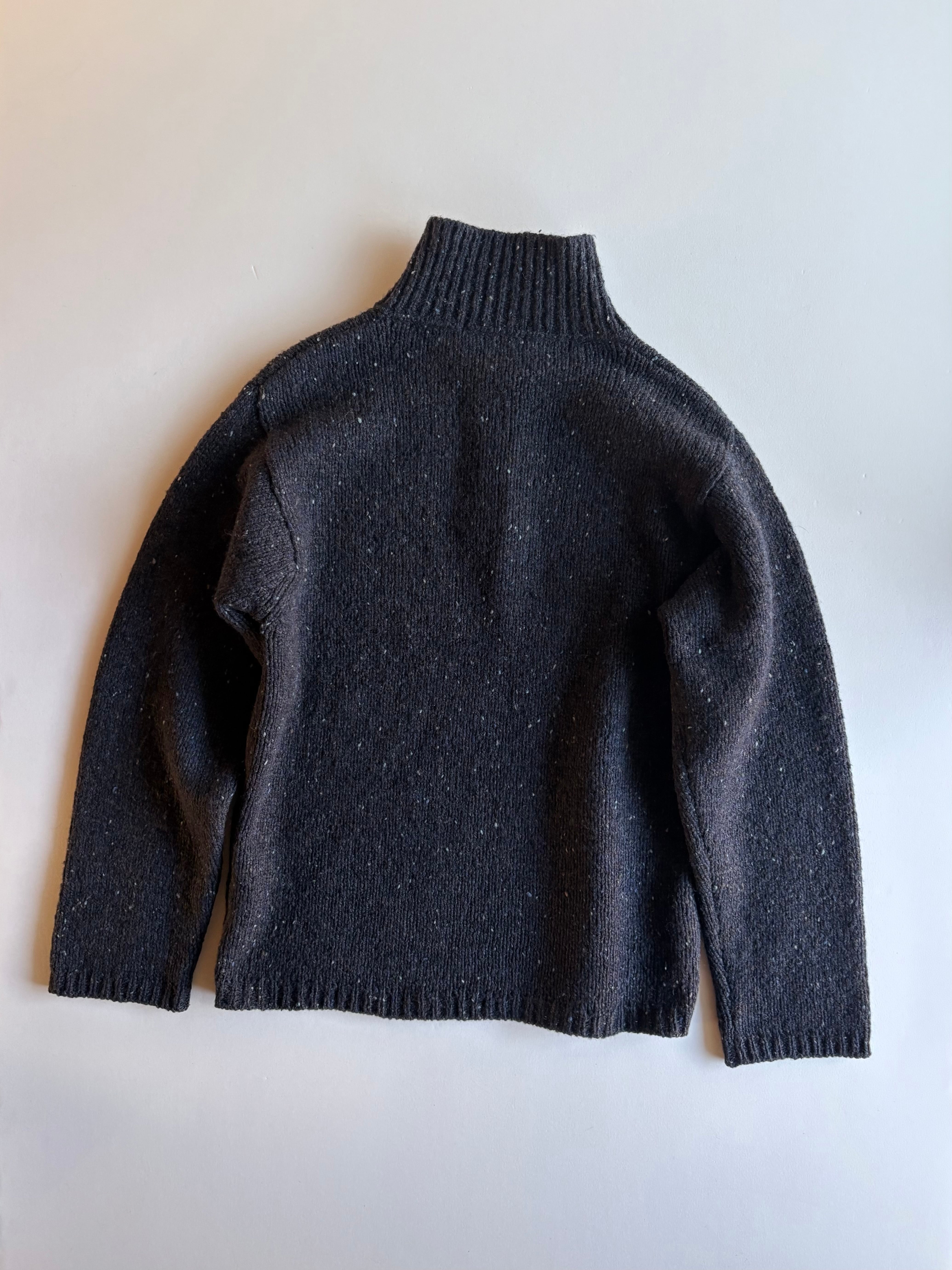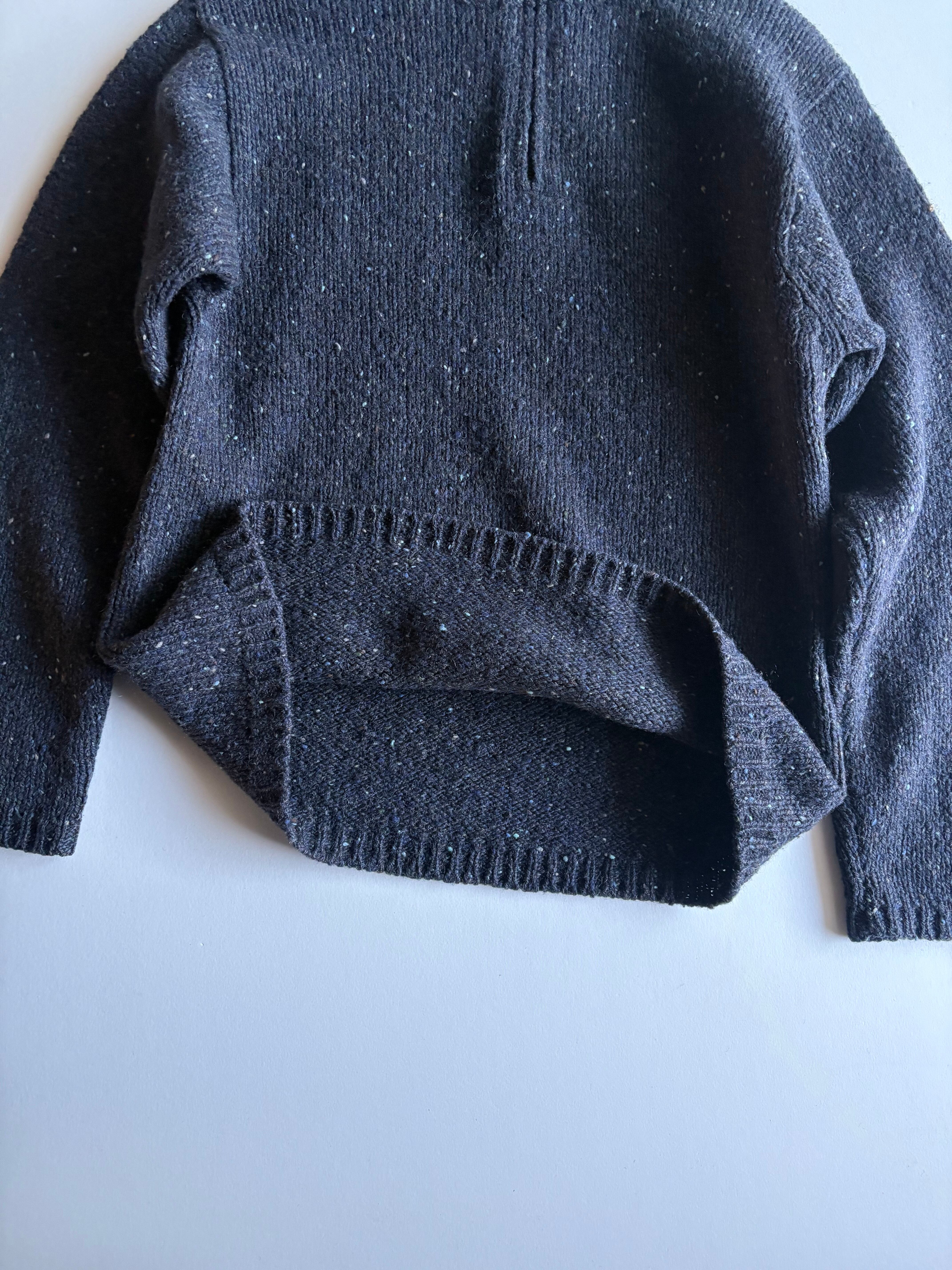 ネイビーの様な色合いながら、マーブル調な糸が混ざっているので、センスを感じるおしゃれな一枚。